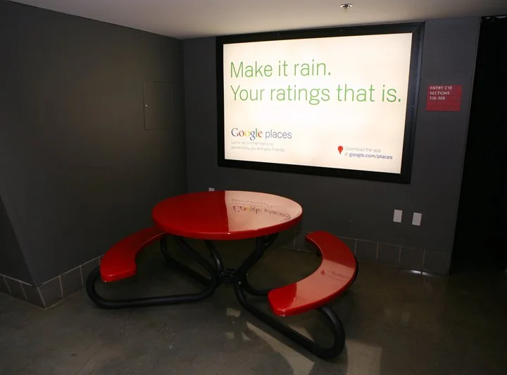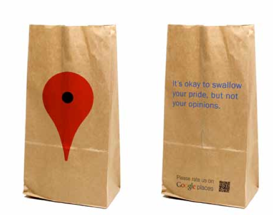 To encourage people to rate their business, Google supplied businesses with bags, fortune cookies, cards, pens, and other goodies with cheeky lines. Google sent out RFID door sticker, and a Google Places bowl to the top-rated businesses in different cities throughout the US. Madison, Austin, Charlotte, Portland, and Las Vegas.
