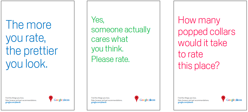 Second, we created a consumer campaign that was aimed at using Google’s new tools that worked as both local and social. Encouraging people to vote on local places, pick their favorites and build a sense of community.