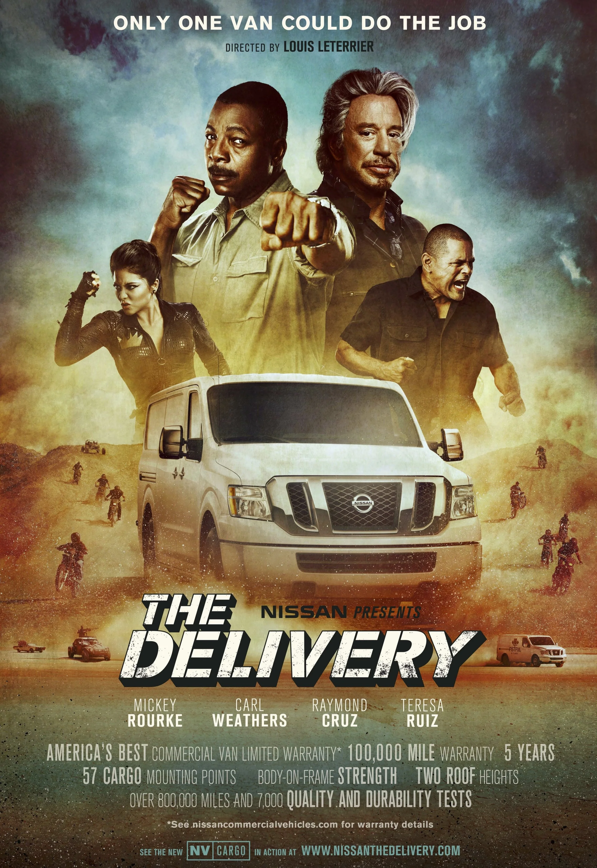 The short film features Special Ops Agent (Weathers) teaming up with a retired Green Beret, turned florist (Rourke) for “one last job,” which entails a unique and highly confidential delivery using their trusted white steed, a Nissan Commercial Delivery Van. This mission takes them on a wild adventure through the Mexican desert. Along the way, they are forced to fend off a gang of angry locals (led by Raymond Cruz) to save the day for one powerful leading lady (played by Ruiz).